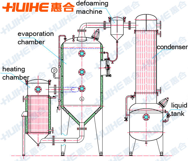 1.Single effect outer cycle vacuum concentrator is the ordinary type, which is suitable for evaporation of water solution.
